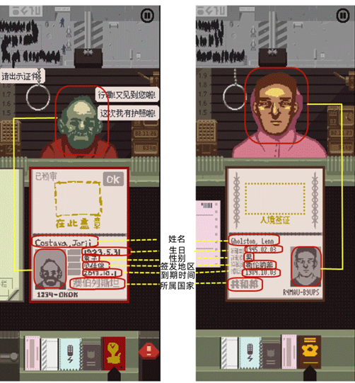 玩家们每日的工作便是对着各种证件,结合当日政策来决定是否能将其放行。当然了,在这一大批的人群中,想要“蒙混过关”的人可不在少数。
