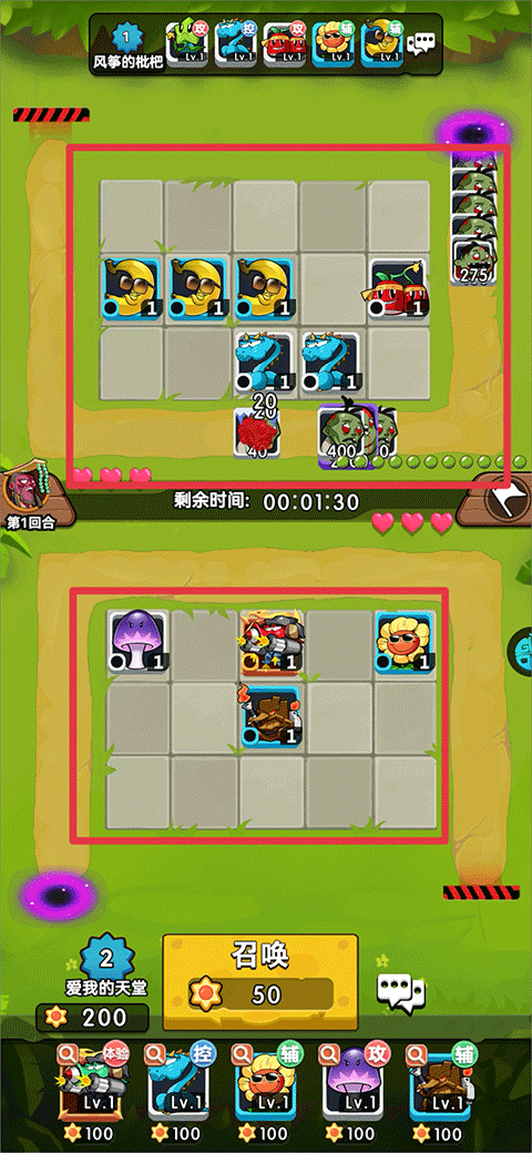 2、若召唤出相同等级的植物后,你可以将它合并成随机植物英雄