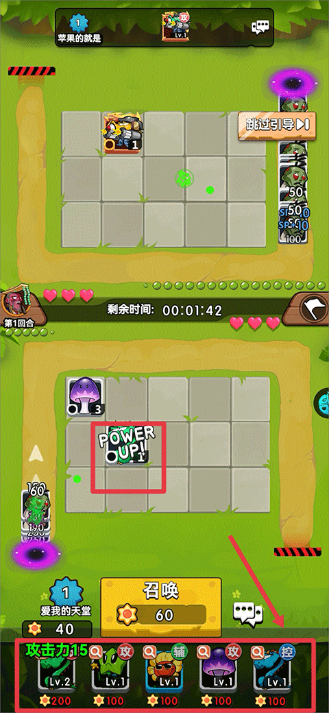 召唤植物英雄:点击召唤按钮,就能让这些小家伙们上场战斗了!