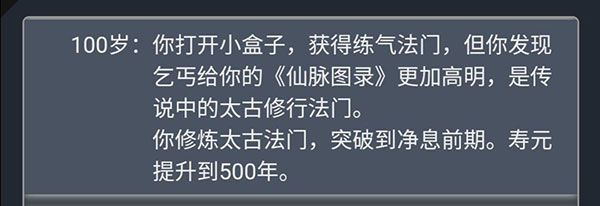 4、小盒子活到100岁,并且有《仙脉图录》开修仙。