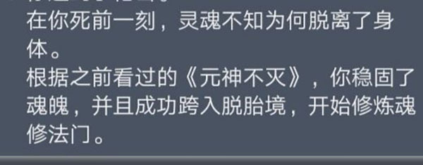 5、触发 轮回之外,并且有《元神不灭》开魂修。轮回之外好像要意外死亡才行,病死老死都不行