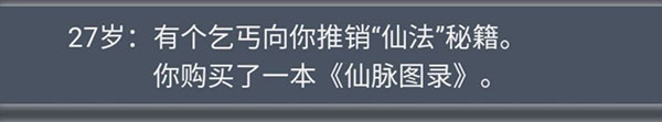 3、智商11或者大于11遇到乞丐卖书会买书,没有轮回之外买《仙脉图录》,有轮回之外买《元神不灭》。