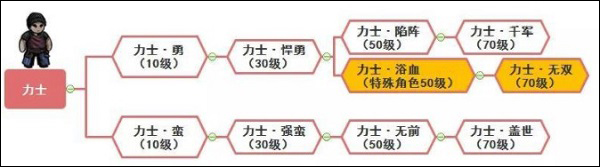 力士在10级之后可以转职为力士·勇或者力士·蛮,具体的转职树如下图所示: