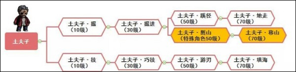 土夫子这一职业在游戏中升到10级之后有土夫子·掘和土夫子·技两条转职路线,具体的转职路线如下: