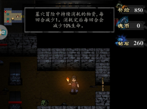 1、下墓倒斗的时候最重要的是“补给”数值,前面已经说过了这游戏是回合游戏,补给上的值即是本局最大的回合数,补给消耗完毕后每回合就会掉10%生命值基本上也就宣判死刑了。当然副本关卡里也会有道具可以恢复补给记得常备1-2个补给品最为稳妥。