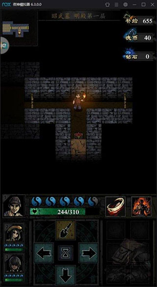 后期可以携带道具保证探索的充足续航。进入迷宫后,界面右上角分别为——补给,魂币,钻石。