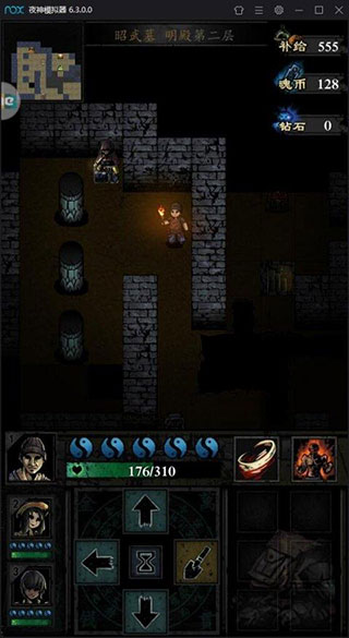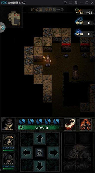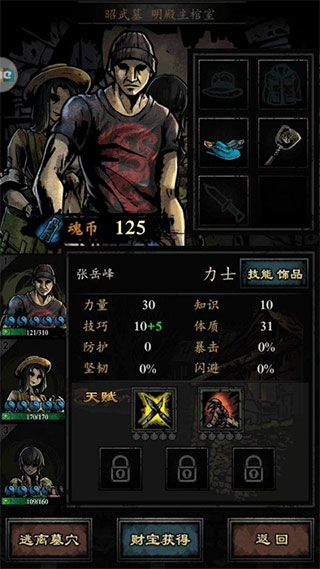界面左下角为携带队员,点击头像可查看属性天赋,长按右侧可以查看具体技能介绍,方向键上方为阴阳鱼(技能消耗值),注意技能的消耗以及搭配才能顺利倒斗。