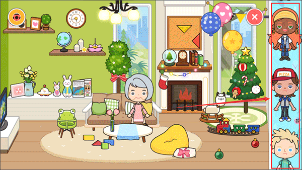 3、另外我们还可以点击右上角的按钮,在弹出的框里拖动其他角色到当前的房间中,为房间增添些许色彩。
