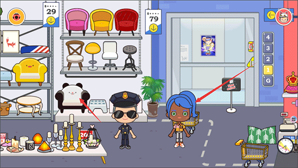 2、每个场景中的部分道具和全部人物我们都可以随意拖拽移动;