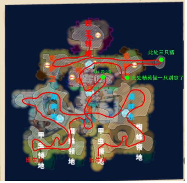自由探索当然不能是一句空话。丰富的地形和路线,让探索成为乐趣。丰富的事件,让探索不再枯燥。丰富的Boss怪物,让探索充满挑战!直接上图,一位大神贴心为大家准备的新手地图的探索攻略图。