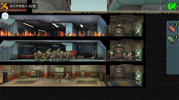 建筑建成之后,可以用瓶盖给建筑升级,增强建筑的生产效率与存储容量、功能性等。例如避难所大门,低级的大门匪徒砍几下就破,中级的大门可以支撑到避难所中层居民前去支援,高级的避难所大门则可以支撑到底层的居民上去支援。建筑支持拆掉重建。