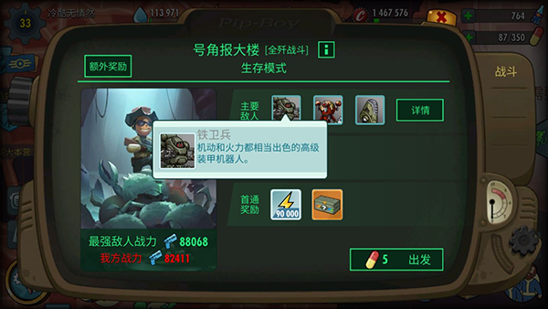 大家可以参考我跨战力的属性,至少达到我这个级别哦!关于阵容方面我用的是标准废土流,大家可以参考,主要就是一肉,一奶,一输出,2辅助的标准阵容搭配,大家根据自己情况来,诱人的会问了,你这没有去辐射的啊,其实不用去辐射完全能打,不信往下看。