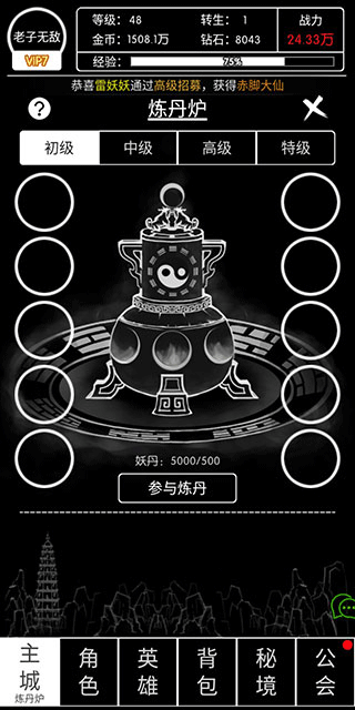 游戏界面采用黑白风格,简洁明了,配合背景音乐,带来沉浸式的降妖除魔体验。新手可以通过完成主线任务、领取礼包兑换码等方式快速提升战力,建议刷出橙色英雄以增强实力。镇妖塔是获取装备和招募令的重要途径,玩家需要合理分配资源,优先培养四技能英雄。