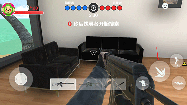 5、而寻找者就是找到藏在房间内的所有躲藏者,寻找中有武器,利用手中的武器对着可疑的物品进行射击