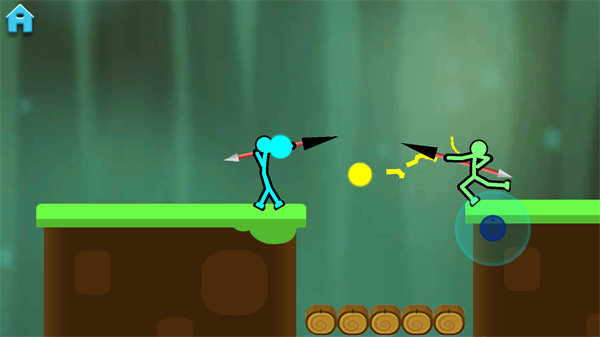 游戏中你可以扮演一个强壮的火柴人战士,选择自己心仪的武器和造型,然后用这些酷炫的装备去干掉对手。战斗中合理利用地形和技能是制胜的关键哦!(其实就是按住按钮就能发射子弹啦)