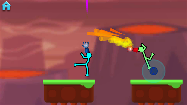 游戏中玩家将化身为一名筋骨强劲的火柴人,玩家需要选择你最喜欢的武器,皮肤等等,使用各种强力、有趣的武器进行战斗,去干掉你的对手取得胜利。在此过程中你可以合理利用地图以及熟练使用技能来取得优势,只有熟练使用技能才能轻松制胜,玩起来十分有趣。