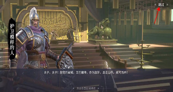2、这里是故事情节,点击右上角的跳过;