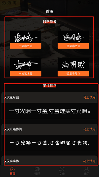 3、还为用户提供了相关的字体课程,可以在这里轻松学习书法字体;