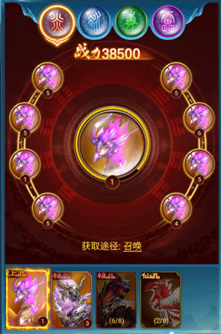 每一位神将都可以装备三件专属神器,神器激活后可继续获得相同神器进行进阶,不断提升战力,神器可通过召唤或后续其他活动获得。
