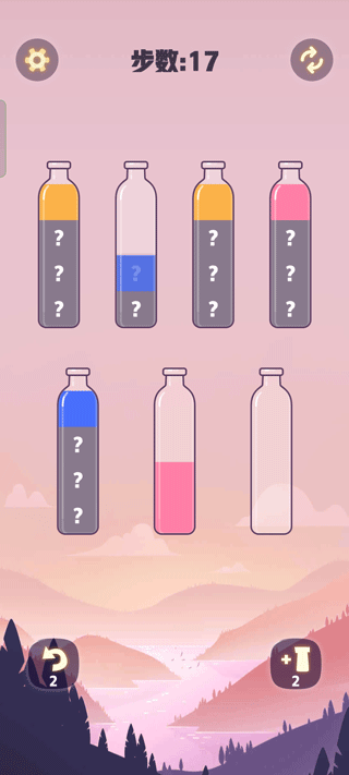 5、还有神秘的关卡,我们只知道瓶子第一层的液体,需要倒出第一层才能看见底下一层的液体,这就需要我们谨慎操作了
