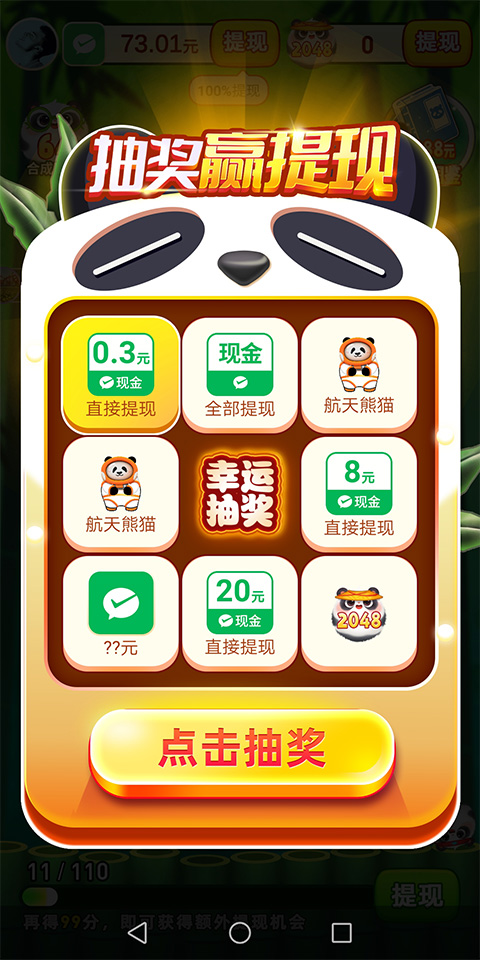 玩家通过不断合成熊猫就可以获得更多的提现金额