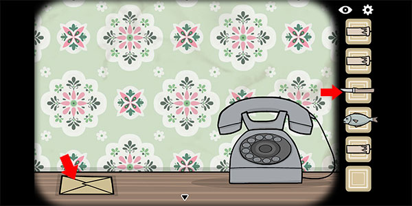 4、用小刀划开有电话的桌子上放着的信封,打开里面的纸,纸上有一行“enlighten me”;