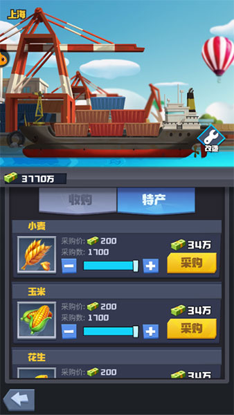 在游戏中除了店铺能产出现金之外,通过航海贸易系统也可以赚取大量的现金。在公司9级开放贸易系统之后,董事长就可以在货船停靠的港口购买特产货物,然后航行到其它港口卖出货物赚钱了。