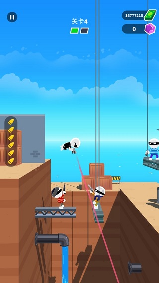 游戏最大的特色就是“子弹时间(Bullet time)”,简单而言,就是在玩家射击敌人的时候,会进入到慢动作时间里,而你需要在这段时间内,把握射击的角度和时机,通过合理的操作完成关卡的要求,非常有成就感!