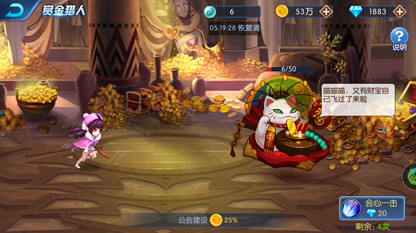 一、赏金猎人刷金币需要法力值,法力值上限60,每6小时回复满,这就需要玩家多留意,每隔4、5个小时收割一波。恢复满60若不使用,白花花的银子就随时间流走。