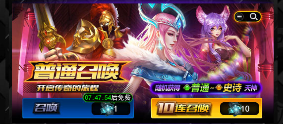 4、普通召唤需要使用普通召唤券,普通召唤券可以在神秘商店和活跃任务中获得,每过8小时可免费召唤一次。
