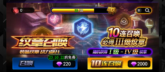 5、纹章召唤既可以使用钻石也可以使用纹章召唤券,召唤满30次可以开启纹章宝箱获得额外的纹章。