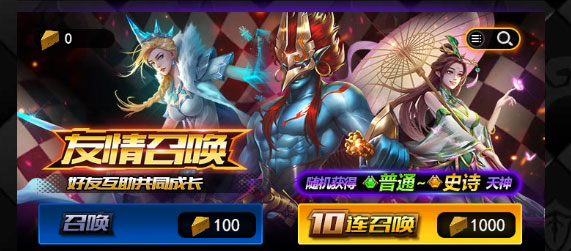 2、能量召唤需要VIP3并消耗1000能量进行召唤,每次高级召唤获得100能量,普通召唤获得10能量,友情召唤获得2能量。