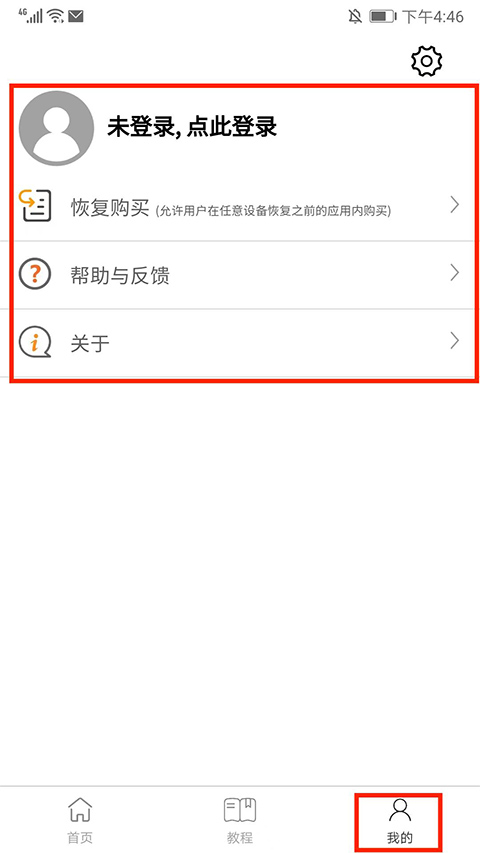 1、打开五子棋教程app,进入应用主界面,包括【首页】、【教程】和【我的】界面,