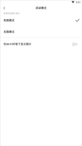 同样在“我的”板块中,针对阅读模式有其他需要的用户,还可以设置有图或无图模式,具体如图所示: