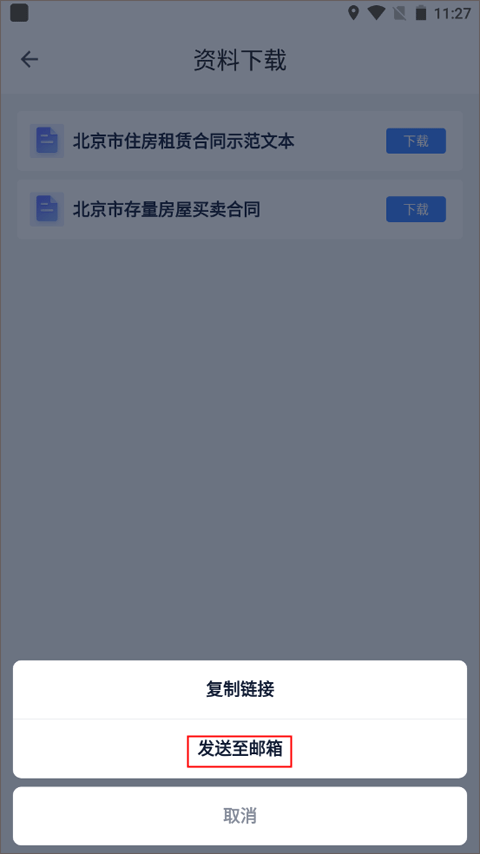 3、这时下方弹出了两种下载方式,一种是复制链接,一种是发送至邮箱,选择其中一个。