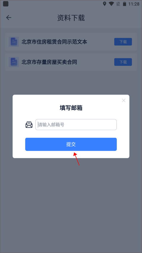 4、以发送至邮箱这个下载方式为例,填写你的邮箱号,点击提交。