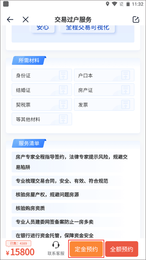 2、在这里它会详细介绍这项服务内容、所需材料、服务清单以及服务的流程操作,你可以根据自身的情况选择定金预约或全额预约。