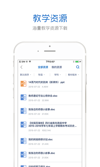 3、资源管理:提供丰富的资源,包括微课,教学设计,导学案,课件等。对我上传的资料进行在线管理,同时可以查看到他人的资料,支持对他人资料进行收藏,方便日后学习。