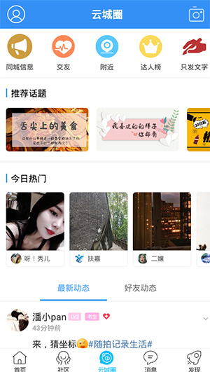 4、点开云城圈,可以查看其它用户发布的动态,方便交友;