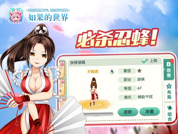 游侠伙伴攻击和防御能力中等,最最重要的是拥有封印、致盲等硬控技能,正因为控制强力,成为团队中必不可少的一份子。只要能控死对方主力输出,胜利也就近在咫尺了。主流的双控阵容,就是利用游侠强控,耗死对手的打法。选择游侠伙伴的话,集美貌与实力于一身的不知火舞当然是最佳选择。