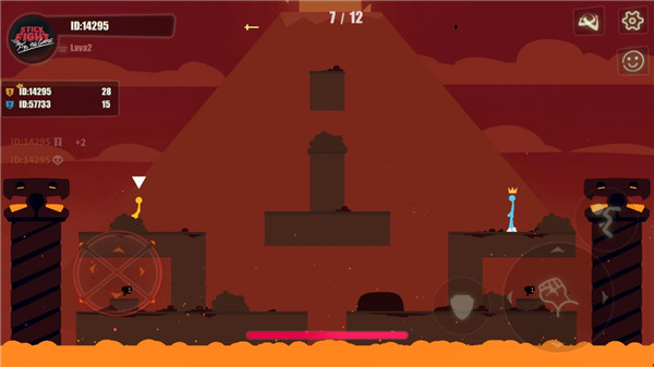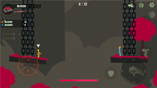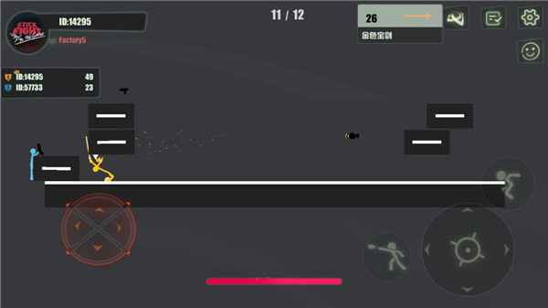 Stick Fight The Game手机版是一款全新的2D横版火柴人格斗手游,一般又简称为Stick Fight,中文名叫做:逗斗火柴人,该游戏采用了独特的横版火柴人视角,玩家在这里只有一个目的:彻底击垮你对面的火柴人。游戏的玩法非常简单但又充满了乐趣,玩家需要控制着一个由小木棍组成的角色,参与2至4人的对战。玩家可以在各种各样的场景中,如悬崖边、火山口、工厂等进行战斗,目标是通过击败其他玩家,生存到最后成为胜利者。