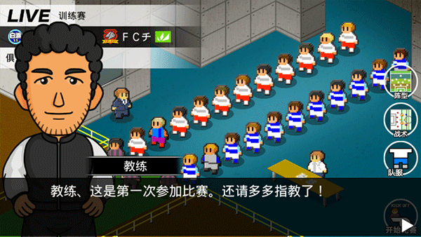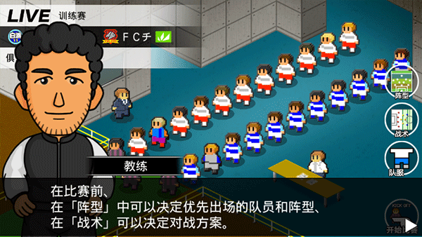 2、在比赛前,可以点击阵型调整出场的队员和阵型,点击战术可以决定对战方案