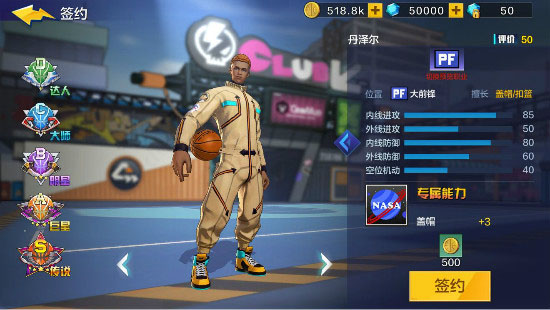 篮球手需要通过提升训练阶级,可解锁相应技能和技能栏(技能栏用于装备技能)篮球手可以选择自己喜欢的技能,收集材料升级技能等级,升高技能的等级,可获得强力的效果与帅气的动画!你可以自由搭配技能,还可以连招,玩出你要的套路,