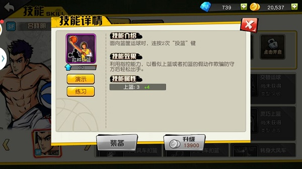 4、 灵巧上篮:虽然有了拉杆上篮,但是还是需要其他技能做配合,灵巧+拉杆的组合,如果对面防守不是很给力的话,那整场比赛势必有你来主导了。