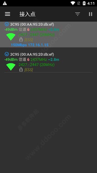 - 可用滤波器:WiFi频段,信号强度,安全性和SSID