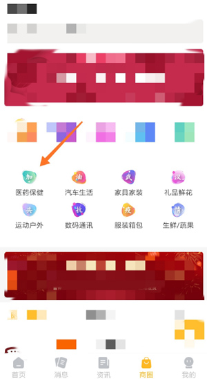 1、在手机上运行软件,进入界面,点击下方的“商圈”;