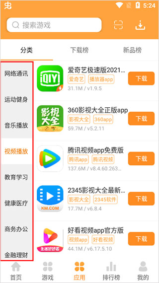 3、应用,这里拥有多种分类的软件,如运动健身、教育学习、商务办公等等;