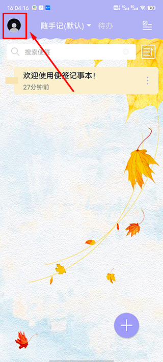 1、打开便签记事本2、点击页面左上角的【头像】图标