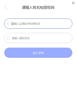 若用户无关联有效学校,则需要输入授权码和姓名,进入到关联学校;