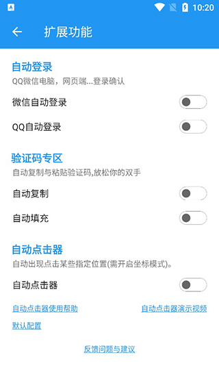 当我们打开手机中的微博、斗鱼直播、今日头条等软件时,肯定会遇到带有跳过字样的广告,这给我们带来了极大的不好的体验。为此小编带来了Auto tool软件,这是一款由个人研发的超级好用的广告跳过软件,尽管不能直接帮助用户拦截各种广告,但是可以在用户启动软件的那几秒直接跳过广告,快速进入软件内,免去了手动点击跳过的操作,带给你更好的手机使用体验。该软件还内置了微信自动登录、QQ自动登录、自动复制验证码、自动填充验证码等多项功能,当你手机接收到验证码,就会自动填充验证码至输入框,从而减少不必要的频繁操作。PS:本站提供的是Auto tool破解版,由大神耗子修改,已经解锁了高级版的全部功能,直接安装所有功能都可以免费使用,有需要的朋友抓紧时间来下载吧。